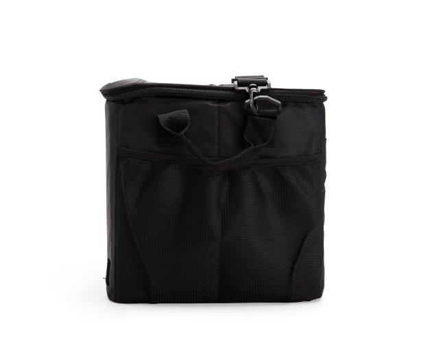 Com as mãos ocupadas, a alça transversal com apoio de ombro salva o seu conforto. Ao chegar, a tampa rígida serve de mesa para seus copos, enquanto o Poliéster 840D aguenta o tranco do asfalto ou da terra sem sofrer um arranhão.