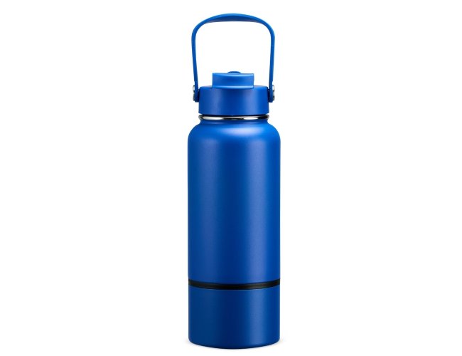 Garrafa térmica em inox com pintura eletrostática e capacidade de até 700ml. Apresenta estrutura interna de parede dupla e vedação a vácuo, o que ajuda a conservar a temperatura de líquidos por mais tempo. Conta ainda com fundo removível. Possui tampa plástica rosqueável com protetor para o bocal, bico flip, canudo interno removível e alça fixa para transporte.