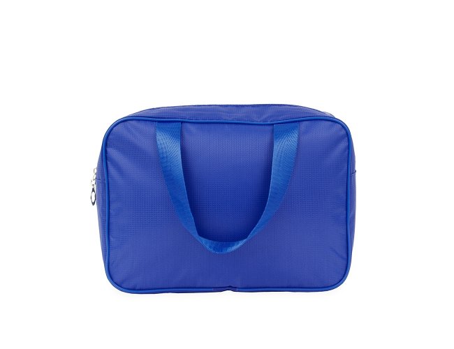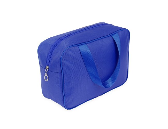 Nécessaire impermeável confeccionada em Poliéster e revestimento interno em PVC. Possui fechamento em zíper e duas alças em nylon.
